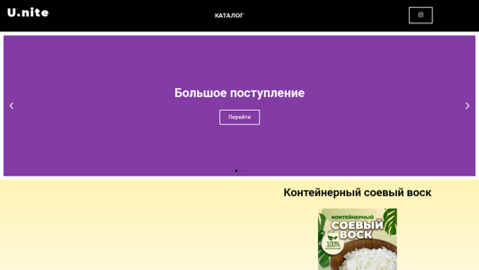 | AI-анализ | This online resource, titled "u-nite," is an e-commerce website selling various types of candles and candle-related items. Keywords associated with the site include "соевый" (soy), "воск" (wax), "фитиль" (wick), "деревянный" (wooden), "свеча" (candle), "ароматическая" (scented), "дома" (home), and "каталог" (catalog). The top words on the site are "перейти" (go), "свечей" (candles), and various quantities of items, such as "большое поступление" (large stock), "100 шт" (100 pieces), and "3 кг" (3 kg). The site offers soy wax for candles in containers |