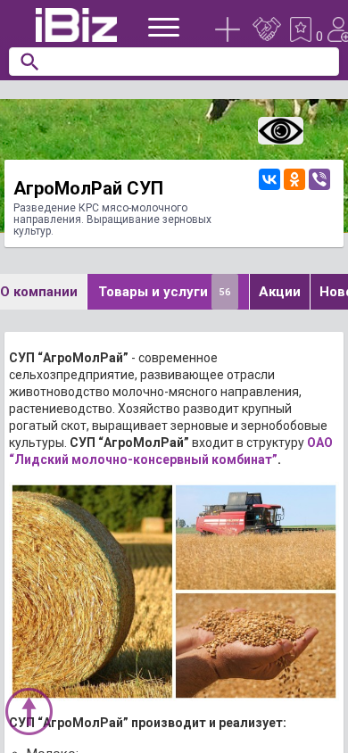 | AI-анализ | The portal AgroMolRay SUP is a modern agricultural enterprise specializing in the development of livestock farming for the milk-meat direction, and crop farming. The farm breeds large dairy cattle and cultivates cereal and legume crops. AgroMolRay SUP is part of the structure of OAO "Lidsky Molchniy Konservnyy Kombinat". The farm produces and sells: milk; beef; grain; rapeseed; hay, silage, and haylage. The agricultural enterprise includes dairy-breeding farms, farms for fattening young cattle, a mechanized farm, which serves a large transport fleet with cargo, tractor, and agricultural machinery, equipment, and grain drying complexes. We guarantee high-quality agricultural products and competitive prices. The farm offers services for soil cultivation and grain harvesting to legal and physical entities. |
