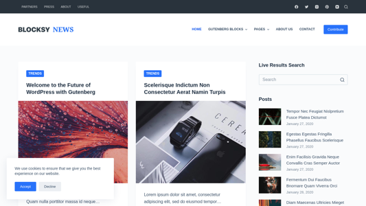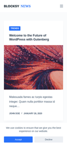 | AI-анализ | The web project "Blocksy – Free Creative Multi-Purpose WordPress Theme" is a website dedicated to offering a free WordPress theme named Blocksy. The theme is described as a multi-purpose one, suggesting its applicability to various types of websites. The site contains information about the theme's features, which include Gutenberg Blocks, Combined Blocks, and Columns. Users can also create Block Image & Gallery, Quote, Table, Button & Separator, and Pages using the theme. The site offers different width options, such as Narrow Width and Default Width, and sidebar variations, including Right Sidebar and Left Sidebar. The site also features an 'About Us' section and a 'Contact' page with a physical address, as well as links to social media platforms like Facebook, Twitter, Instagram, Pinterest, and YouTube. The site uses cookies and has a blog section with |