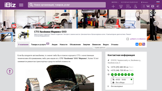 | Название / Заголовок | СТО Хвойники Марвико ООО - Диагностика подвески. Ремонт подвески. Экспресс замена масла. Шиномонтаж и балансировка колес. Компьютерная диагностика. Ремонт электрооборудования. . 223232, , Хвойники д., Хвойникская, 6 |