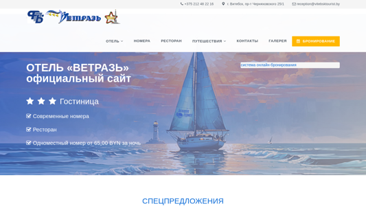 | AI-анализ | The portal 'Vitebsktourist.by' is a website for the hotel 'Ветразь' in Vitsebsk, Belarus. The website provides information about the hotel, its rooms, restaurant, and various services. It also offers special deals and online booking system. The hotel seems to have a conference room, secure parking lot, and baggage storage for guests. The website also features news and events, and information about the hotel's partnership with the Federation of Trade Unions of Belarus. The website also includes a restaurant with New Year's corporate events. |