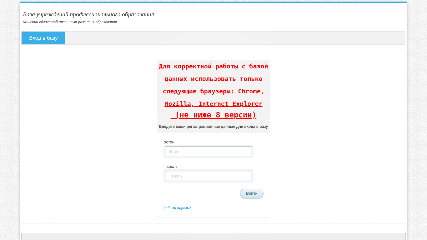 | SEO-лексика | образования минский областной институт развития базу пароль учреждения пто ссо база учреждений профессионального вход корректной работы базой данных использовать только |