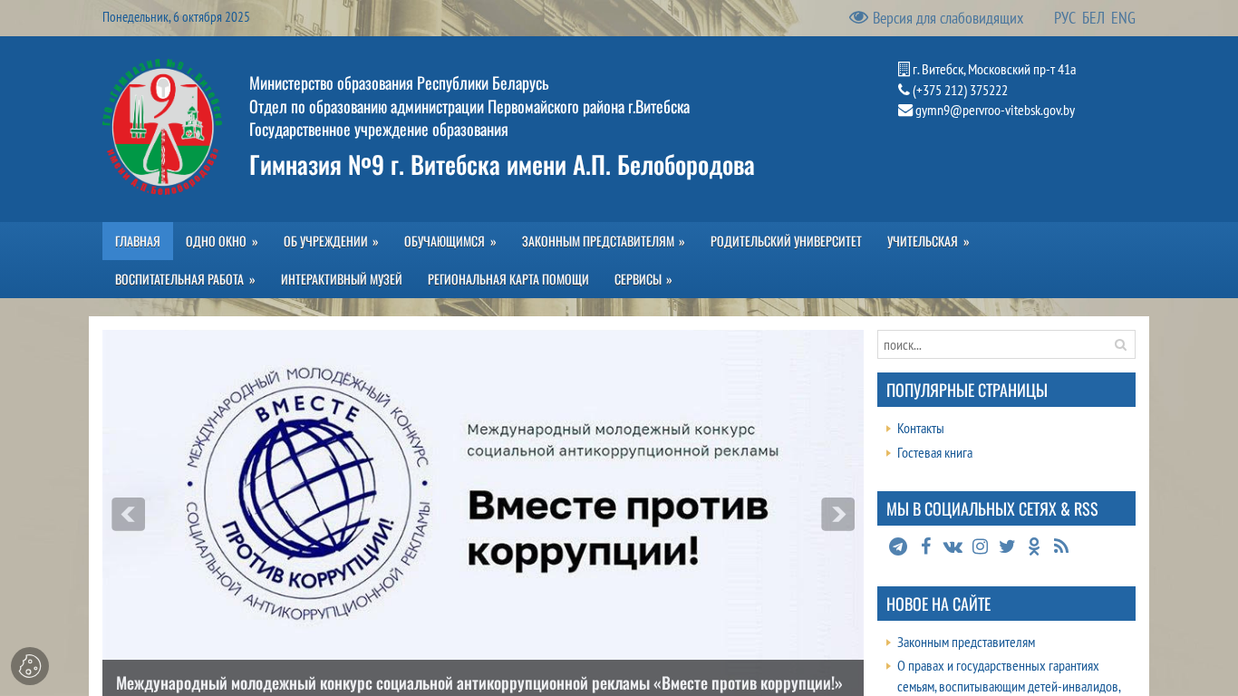 | Название / Заголовок | Гимназия № 9 г. Витебска имени А.П. Белобородова |