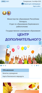 | AI-анализ | The website is the official site of the Center for Additional Education for Children and Youth in the city of Belozerka, Belarus. The title of the website is "Центр дополнительного образования детей и молодежи г.Белоозерска" and the description includes keywords related to education, size of text, line spacing, website color scheme, image usage, and additional features such as accessibility options and contact information. The website provides information on the center's administration, pedagogical staff, classes, safety policies, services, and various initiatives. Users can find schedules, apply for services, and access resources such as a map of the ministry of education, regional assistance, and eco-initiatives. The website also includes a news section, a guestbook, and a search function. The contact information includes a postal address, two phone numbers, and an address |