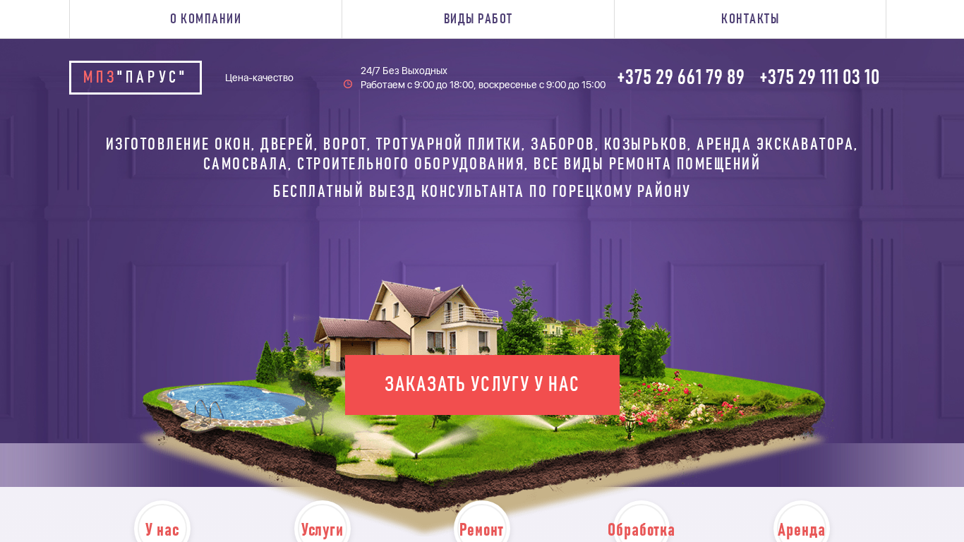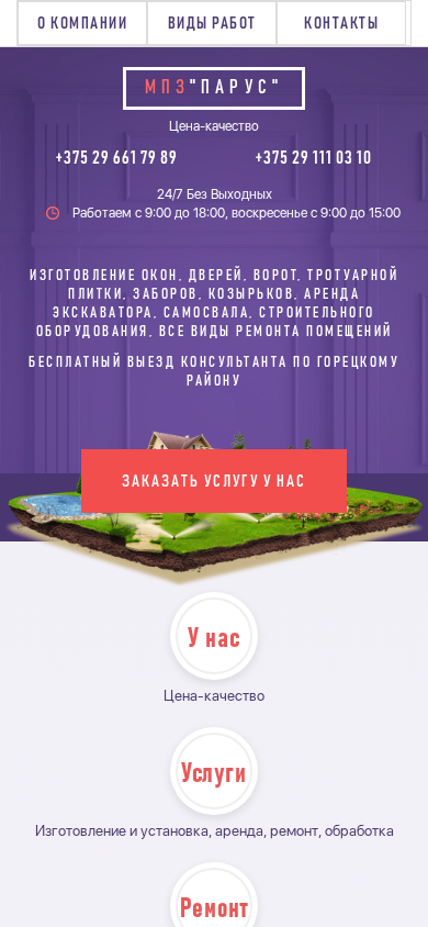 | AI-анализ | --- The website is a company specializing in the production and installation of windows, doors, trotuar paving stones, and gates in Gorki, Belarus. They offer services including repair in various settings, agricultural equipment and tire repair, and metal processing. Equipment rentals include excavators, dump trucks, and construction machinery. The company provides free consultation visits in the Gorki district and offers a price-quality ratio. Services include window and door production and installation, metal fabrication, and paving stone installation. Repair services cover household appliances, agricultural equipment, and buildings. Metal processing includes both ferrous and non-ferrous materials. Equipment rental includes maneuverable excavators and dump trucks, as well as a large inventory of machinery and tools. The company produces and installs PVC windows and doors, and offers custom metal construction solutions for retail spaces, farms, homes, greenhouses, |