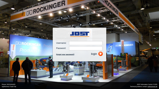 | AI-анализ | language: en This website is titled "Login" and functions as the access point for the JOST Information Centre. The description indicates that it is the hub of all assets for JOST. The top keywords include "login," "jost," "information," "centre," "password," and "username." Users are prompted to enter their credentials for access. The website also includes options for forgotten passwords and a picture of ROCKINGER Agritechnica Trade Fair. The website is owned by JOST Information Centre, copyrighted in 2025, and offers technical support through the email address jic@schmoe.de. The language is English. |