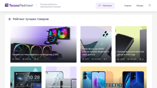 | AI-анализ | --- The portal TechnoRating is a website focusing on finding the best products in terms of price and quality. It provides a list of top-rated items in various categories such as electronics, smartphones, televisions, gadgets, components, peripherals, monitors, photo and audio equipment, notebooks, home appliances, vacuum cleaners, personal care, climate technology, beauty and health, heating, automotive technology, tools, garden technology, sports technology, and plumbing. The website includes articles, product reviews, and ratings of the best items in each category for the year 2025. Some of the featured categories include best water cooling systems (SVO), top smartphones under 50000, best external hard drives, best car stereos, best smartphones under 35000, best TECNO smartphones, best irrigation systems, best coffee machines by De |