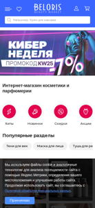| AI-анализ | --- The portal Beloris is an online cosmetics store offering delivery to Moscow, Saint Petersburg, and other cities in Russia. It features a wide assortment of over 700,000 product names from various well-known brands. The website provides discounts, gifts, reviews, and product assessments. Customers can place orders with operational delivery in the mentioned cities and enjoy free shipping*. The website includes sections for skin care, makeup, perfumery, and various other product categories such as hair care, body care, and personal care items. It also offers household items, clothing, and accessories, among other things. The website supports multiple brands, including 360, 3A Color collection, Aasha Herbals, and others. |