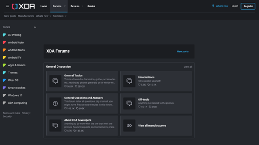 | AI-анализ | This online resource is titled "XDA Forums" and is described as an Android forum for mobile phones, tablets, hardware, and app development. The website contains various forums, topics, and guides related to Android phones and devices from different manufacturers, including Asus, Google, HTC, Honor, Huawei, Lenovo, LG, Motorola, Nokia, Nubia, OnePlus, OPPO, Razer, RealMe, Samsung, Sony, Vivo, Xiaomi, and ZTE. Users can engage in discussions, view new posts, and access manufacturers' news and forums. The website offers sections for 3D printing, Android auto, Android mods, Android TV, app development, wear OS, smartwatches, and Windows 11. Additionally, there is a section for XDA Computing, focusing on artificial intelligence, AI & machine learning, and |