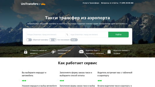 | SEO-описание | Забронировать недорогой трансфер из аэропорта или города в аэропорт поможет сервис бронирования такси UniTransfers.ru. Легкий способ добраться из аэропорта до отеля. |