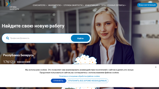 SEO-описание | Найти работу РБ. Поиск работы. Свежие вакансии. Работа тут. Поиск среди вакансий. Свежие, актуальные вакансии. Работа в Минске, Гомеле, Бресте, Гродно, Витебске, Могилеве. ГСЗ. Служба занятости. Банк вакансий РБ. Государственная служба занятости. Общереспубликанский банк вакансий. Банк вакансий РБ. |