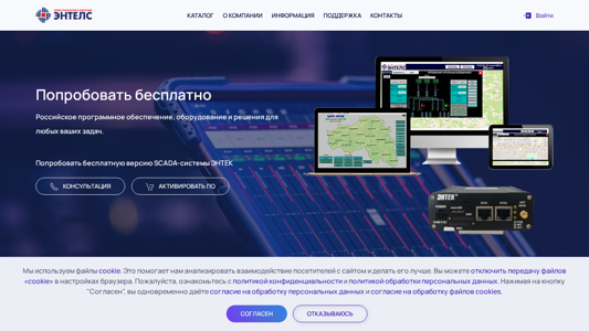 | AI-анализ | The web project "Российское программное обеспечение, оборудование и решения для любых ваших задач | ООО "ЭНТЕЛС" (entels.ru) is an e-commerce and consulting platform for software, equipment, and solutions provided by the Russian company ООО "ЭНТЕЛС" (Entels). The website offers a free trial for their SCADA-system, ENTEK, and consultation services. The top keywords for this domain are 'данных' (data), 'энтек' (ENTEK), 'подробнее' (more details), 'оборудование' (equipment), 'решения' (solutions), '2025', 'компании' (company), 'наши' (our), 'персональных' (personal |