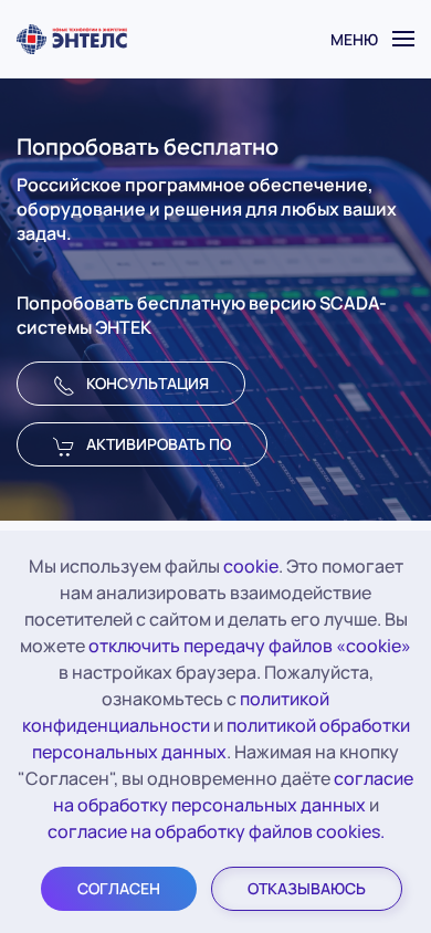 | SEO-описание | Попробовать бесплатно Российское программное обеспечение, оборудование и решения для любых ваших задач. Попробовать бесплатную версию SCADA-системы ЭНТЕК Консультация Активировать ПО Цифровая ... |