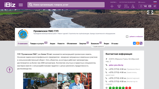 | AI-анализ | This website is for GUP (State Unitary Enterprise) Puhoвичское PMS, which specializes in meliorative works, building repairs, pipeline construction, and equipment rental in Mariyina Gorka, Belarus. The address is October First Street, number 2. The company offers various services including the reconstruction, repair, and maintenance of meliorative objects; building repairs of all kinds; pipeline construction; road construction; and equipment rental. GUP Puhoвичское PMS has been working on meliorative projects for over 70 years, with a network of objects covering more than 2000 kilometers. The team of experienced and skilled specialists, along with farmers, work together to increase agricultural productivity. In addition to specialized meliorative works, the company also provides other services such as the reconstruction and maintenance of meliorative objects; building repairs; pipeline construction; road construction; and equipment |
