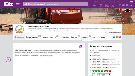 | Canonical URL | https://ozerickiy-agro.ibiz.by |