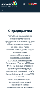 | AI-анализ | The portal "Minsk Plempredprijatie" is a Belarusian agricultural organization focusing on improving the breeding and productivity of farm animals through extensive use of artificial insemination. Established under the Ministry of Agriculture and Food of Belarus, the enterprise comprises 21 branches and filial farms, including the Nezhvizh Filial. The organization operates under its charter, the Belarusian law on animal breeding, and other relevant regulations. Employing over 260 staff, the portal offers a range of services, including the collection and sale of high-quality farm animals, import and export of livestock semen, and horse breeding and sales. Additionally, it provides training in artificial insemination techniques for large livestock, and offers a milk laboratory for quality control. |