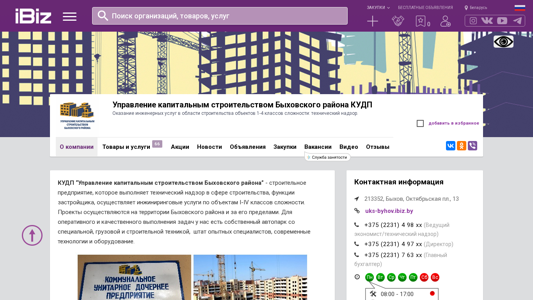 | AI-анализ | The web project "Uks-byhov.ibiz.by" is a construction management company based in Bypoh, Belarus. They provide engineering services in the field of building construction, specializing in technical supervision for objects of classes 1-4 in complexity. The company's address and contact details are provided, along with information about their services in areas such as water and sewage systems, internal heating networks, ventilation, air conditioning, external heating networks, gas supply, electricity, communication, signaling, and building construction. The company boasts a team of experienced specialists, modern technology and equipment, and their own fleet of vehicles for specialized, heavy, and construction tasks. They handle projects both within and beyond the Bypoh region. |