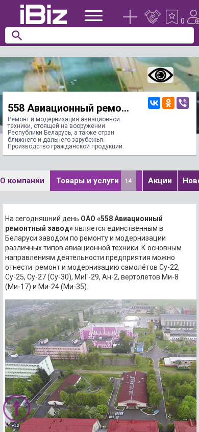 | AI-анализ | This online resource is the official website of 558 Aviation Repair Plant OAO. The organization specializes in the repair and modernization of military and civilian aviation technology used by the Republic of Belarus and foreign countries. The plant produces civilian goods as well. The website provides information on the company's location in Baranovichi, Belarus, and its focus on research and development of new technologies. Key offerings include the repair and modernization of Su-22, Su-25, Su-27 (Su-30), MiG-29, An-2, Mi-8 (Mi-17), and Mi-24 (Mi-35) aircraft, as well as helicopters. The company places a significant emphasis on developing service equipment and implementing new technological processes. In addition, 558 Aviation Repair Plant O |