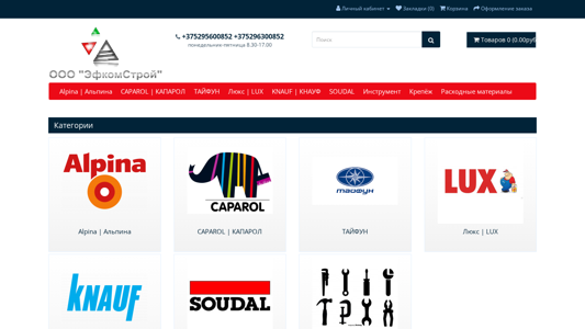 | AI-анализ | --- The website is an online building materials store with the title "Стройматериалы пер.Победы 5" and the domain name 5600852.by. It offers a personal cabinet for registration and authorization, and features categories for Alpina and Caparol products, including grundowkis (groundwork materials), kraski (paints), shpatlevki (plaster), stukaturki (stucco), suhie smesi (dry mixes), kleya (clays), and krovelnye materialy (roofing materials). The site also provides recommended products such as Capatect Fassadenputz (Facade putty) and Capatect Sil-Si Fassadenputz (Silicone facade putty), along with new arrivals and various tools and accessories. The website |