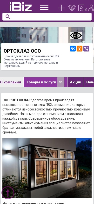 | AI-анализ | The portal is a Belarusian manufacturing company, ORTOKLAS OOO, specializing in the production and fabrication of PVC windows, as well as aluminum windows. Additionally, they manufacture metal products from black metal and stainless steel. The company is located at 222750, Fanipol, Zavodskaya, 41. Production hours are Monday through Friday, 9:00 AM to 6:00 PM, with no lunch break. The contact information includes a phone number +375 (29) 613 19 xx and a mobile number. The company produces and sells PVC windows, aluminum windows, metal products from black metal, and stainless steel. Custom orders for metal products are also accepted. |