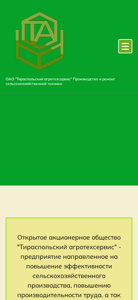 | AI-анализ | This website belongs to Open Joint Stock Company "Tiraspolsky Agrotekhservis" and is dedicated to the production and repair of agricultural machinery. The title of the website includes the name of the company and the term "agrotekhservis," which translates to "agricultural technical services." The description includes keywords related to the company's products and services, such as "agricultural equipment," "metal constructions," and "financing." The website also offers various services, including "news," "anti-corruption measures," and "job openings." The company's mission is to increase the efficiency of agricultural production, enhance productivity, and create comfortable conditions for the production of agricultural products. They produce modern agricultural equipment, equipment for farms, and manufacture metal constructions of any complexity. The company has a powerful technological base that allows for the execution of complex projects on an individual basis. The |