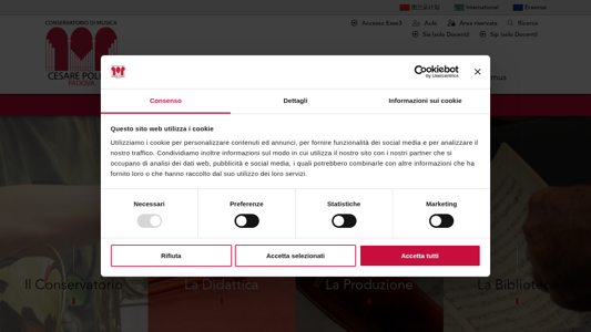 | AI-анализ | The website "Conservatorio Pollini" is an Italian music school website. It uses cookies to personalize content, provide social media functionality, and analyze traffic. Users' consent for these cookies is saved for one year. The website includes necessary cookies for basic site functionality, and optional cookies for preferences, statistics, and marketing. Users are informed about the use of cookies and the associated partners through a consent banner. The website's domain is conservatoriopollini.it. |