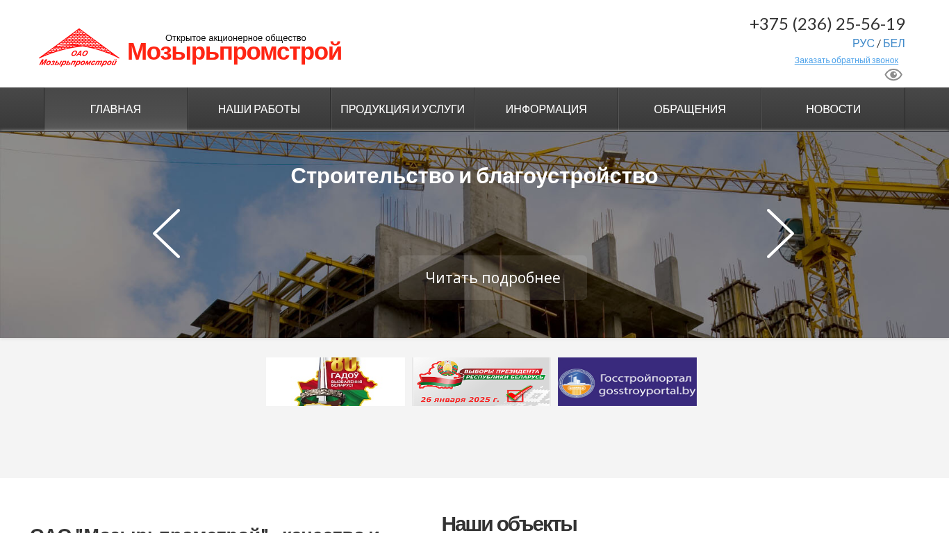 | Название / Заголовок | Мозырьпромстрой - Главная |