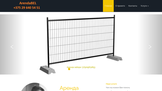 | AI-анализ | country_code: BY language: ru The website "This website is for renting construction fences and barriers starting at 0.11r with delivery. Services include renting, delivery, and installation of portable construction fences. The website also offers the sale and delivery of construction fences and banners. Contact information for renting a fence, crane, and other equipment is provided." |