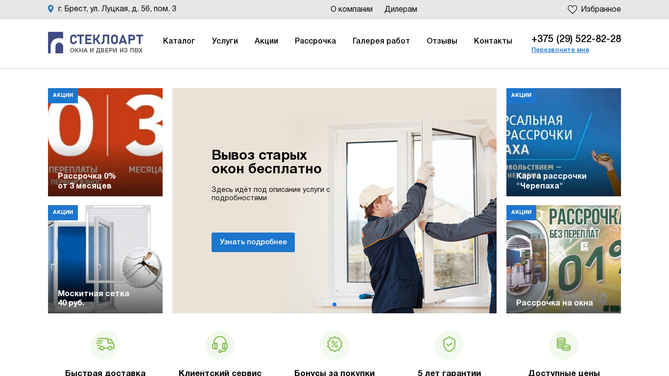 | SEO-описание | Пластиковые окна ПВХ и двери в Бресте➤ от производителя. Гарантия➦ 5 лет! Доступные цены✈, Рассрочка платежей. Менеджеры СтеклоАрт проконсультируют Вас по всем интересующим вопросам |