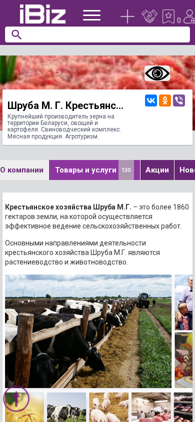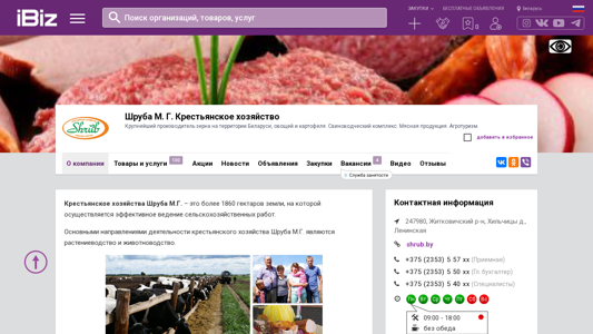 | AI-анализ | The website "Kh-shruba.ibiz.by" is the online presence of M.G. Shruba Farming Enterprise, the largest producer of grain, vegetables, and potatoes in Belarus. The enterprise runs a pig farming complex, producing meat products, and offers agricultural tourism. The site includes sections for 'Company', 'Goods and Services', 'News and Announcements', 'Vacancies', and 'Contacts'. The business, located in the village of Hilchitsy, Leninsky district, Belarus, covers over 1860 hectares of land, specializing in crop and livestock farming. Annually, they yield approximately 20,000 tons of vegetables and potatoes, which are distributed to top Belarusian and Russian retailers. The farm grows elite Dutch potato seed varieties, cultivates produce such as carrots |