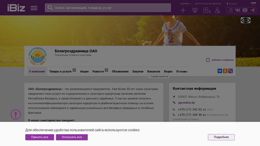 | Название / Заголовок | Белагроздравница ОАО - Реализация путевок в санатории.. 220007, Минск, , Фабрициуса, 7А |