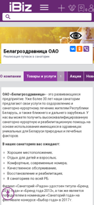 | AI-анализ | The web project "Belagrozdravnica OAO - Realization of Passes to Sanatoriums" is a Belarusian company that facilitates bookings for sanatoriums. The company, located at 220007, Minisk, Fabriciusa, 7A, offers a scheme for reaching the location, as well as contact telephone numbers. Their services include booking passes for sanatoriums in Belarus, with eight options available throughout the country. The company has received various awards, including "Brand 2011 year" and "Brand year 2013," and was a winner in the "Sanatorium of the year" category at the "Choice of the year" festival-contest in 2017. The company operates Monday through Saturday, with hours varying by day and excluding Sundays. Contact information includes |