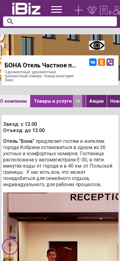 | Название / Заголовок | БОНА Отель Частное предприятие - Одноместный, двухместный, трехместный номера. Номер категории Люкс.. 225302, Кобрин, , М1, 58 км., 2 |