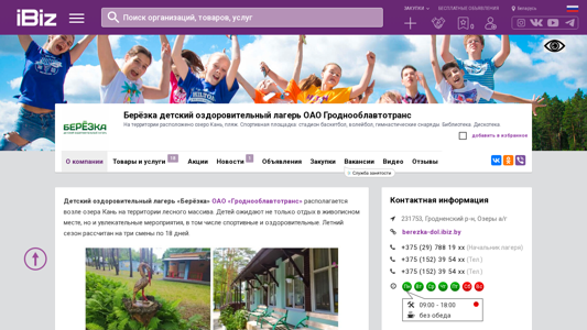 | AI-анализ | This website is for the children's health and recreational camp "Berezka" of OAO Grodnooblavtotrans, located near Lake Kan' and surrounded by a forest. The camp offers children various activities, including sports and recreational facilities such as a basketball, volleyball, and football field, a playground with gymnastic equipment, a library, and a disco. The camp's territory is fenced and guarded 24 hours, ensuring a safe and enjoyable experience for children. The camp season runs for three shifts, each lasting 18 days. Services provided include round-the-clock accommodation, meals, and organization of cultural and mass, sports events. The site includes a map for visitors, contact information, and operating hours. |