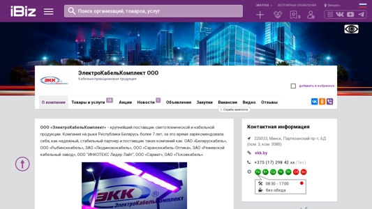 | Название / Заголовок | ЭлектроКабельКомплект ООО - Кабельно-проводниковая продукция. . 220033, Минск, , Партизанский пр-т, 6Д (пом. 3, ком. 308В) |