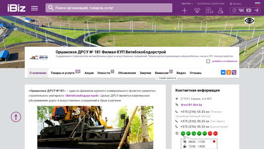 | AI-анализ | The web project "Orshanskoje DRSU № 181 Filial KUP Vitobskoblgorstroy" is a subsidiary of a large communal project-renovation-construction unit "Vitobskoblgorstroy" in Orsha and the surrounding area. Its primary objective is to provide comprehensive maintenance of roads and artificial structures in Orsha and the region. The main areas of activity for the subsidiary include: designing automobile roads and artificial structures, maintaining automobile roads and artificial structures, constructing automobile roads and artificial structures, producing and selling asphalt concrete, sand, and PGS, repairing automobile roads and artificial structures, and landscaping and beautification. The team consists of highly qualified specialists with extensive experience, and the company's vehicle fleet includes modern specialized equipment that enables efficient and high-quality execution of tasks. We look forward to mut |