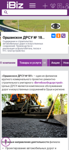 | Название / Заголовок | Оршанское ДРСУ № 181 Филиал КУП Витебскоблдорстрой - Содержание и строительство автомобильных дорог и искусственных сооружений. Производство и реализация асфальтобетона, песка и ПГС. Благоустройство.. 211011, Барань, , а/я №3 |