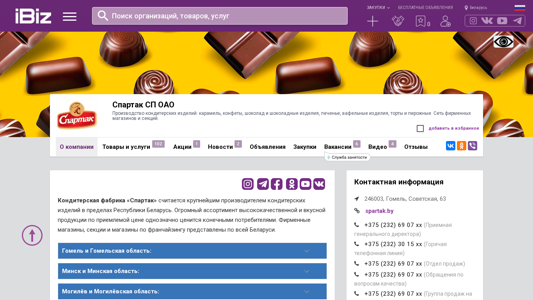 | AI-анализ | The web project <Спартак СП ОАО> is a leading confectionery producer in Belarus, offering a wide range of high-quality and delicious treats at affordable prices. The company's product line includes carmel, confets, chocolate and chocolate products, pastries, waffles, cakes, and pies. The project operates a network of corporate stores and franchises across Belarus. In the city of Homel, corporate stores can be found at ul. Хатаевича, 1, ul. Карповича, 28, Студенческий проезд, 1а, and ul. Каменщикова, 3, with opening hours varying from 8:00 AM to 20:00 PM. For more information, please visit the company's website at spartak.ibiz.by. |