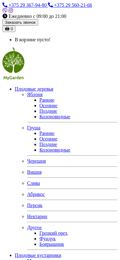 | AI-анализ | This online resource, MyGarden, specializes in the sale of saplings, offering a wide variety of fruit trees and shrubs, including apple, cherry, plum, apricot, peach, pear, nectarine, and others, such as grape vines, gooseberries, currants, and elderberries. The site features a gallery and offers delivery and contact information. The company, with over 20 years of experience, has produced and sold over 200,000 saplings of fruit and berry cultivars. The high-quality saplings are grown using modern technology and eco-friendly pesticides. Delivery is free with orders over 70 rubles within the city of Minsk and 20 km of the Minsk Ring Road. The business prides itself on its honesty, reliability, and a large customer base of |