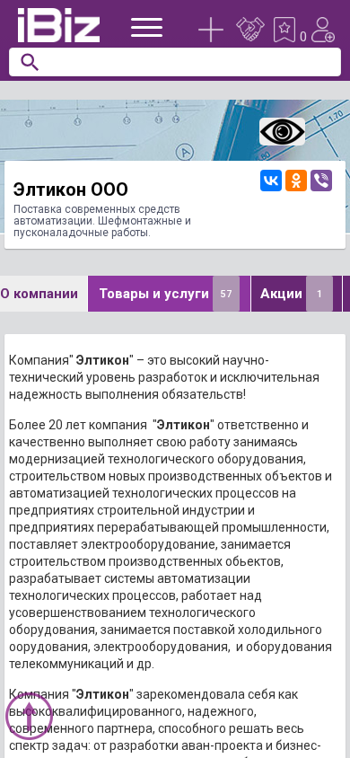 | AI-анализ | This online resource is a company website for "Элтикон ООО," located at 220125, Минск, Острошицкая, 2А in Belarus. The business specializes in the provision of modern automation equipment and offers installation and commissioning services. The website includes a map for directions, contact telephone numbers, and the company's address. The main offerings cover various industrial sectors including electrical equipment, construction, project development, and electronic manufacturing. "Элтикон ООО" has been in operation for over 20 years, providing solutions for modernizing production facilities, constructing new industrial buildings, and automating technological processes. Additionally, the company deals with the sale and installation of cooling equipment, electrical equipment, telecommunications equipment, and other related items. |