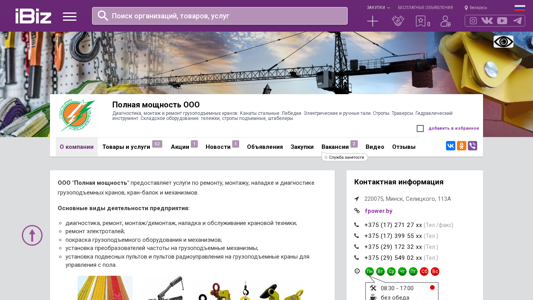 | SEO-описание | Полная мощность ООО - Диагностика, монтаж и ремонт грузоподъемных кранов. Канаты стальные. Лебедки. Электрические и ручные тали. Стропы. Траверсы. Гидравлический инструмент. Складское оборудование: тележки, стропы подъемные, штабелеры.. Схема проезда, контактные телефоны, адрес компании Полная мощность ООО. 220075, Минск, , Селицкого, 113А |