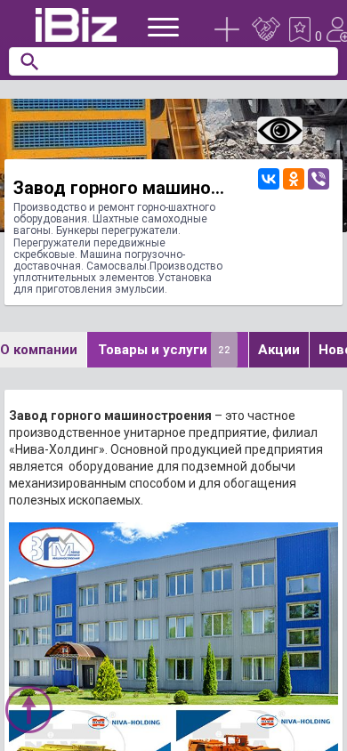 | Название / Заголовок | Завод горного машиностроения Частное предприятие - Производство и ремонт горно-шахтного оборудования. Шахтные самоходные вагоны. Бункеры перегружатели. Перегружатели передвижные скребковые. Машина погрузочно-доставочная. Самосвалы.Производство уплотнительных элементов.Установка для приготовления эмульсии.. 212013, Могилев, , Славгородское шоссе, 171 |
