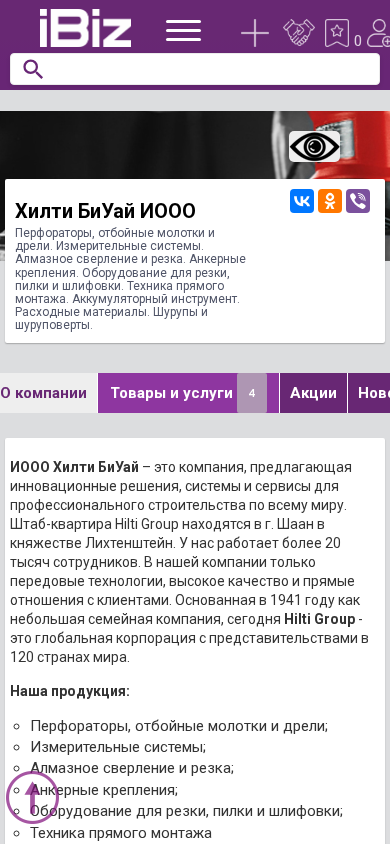 | AI-анализ | The website is a business platform for Hilti BiUay IOOO, a company specializing in the sale of construction and drilling equipment, measurement systems, almazing drilling and cutting, anchoring systems, equipment for cutting, sawing and grinding, direct mounting technology, and accumulator tools. The website offers various products such as perforators, chisels, drills, measuring systems, almazing drilling and cutting equipment, anchoring systems, sawing, sawing and grinding equipment, direct mounting technology, accumulator tools, and fasteners. The company also provides services and systems for the construction industry and has a presence in over 120 countries worldwide. The website includes information about the company, its products and services, as well as contact details. |