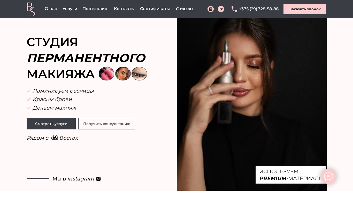 | AI-анализ | The web project "Browsekta.by" is a permanent makeup studio in Minsk, Belarus. They offer services such as eyelash extensions, brow tinting, and makeup artistry. The studio has been in operation since 2015 and has helped hundreds of women feel more confident and accentuate their beauty while saving time on daily makeup routines. The website uses premium-quality certified pigments and pays close attention to individual preferences to ensure a flattering and long-lasting result. The studio boasts a team of experienced professionals who have been in the industry for over 10 years and prioritize client satisfaction. The website includes a portfolio of before-and-after images, contact information, and a consultation form for those interested in scheduling a session. The studio's Instagram account and Telegram chat are also listed for those who wish to connect with the team online. The website is light |