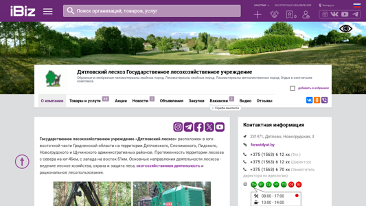 | AI-анализ | This website is for Diatlovsky Leshoz, a state forestry enterprise, located in the southern part of Grodno region, covering territories in Diatlovsky, Sloimsky, Lidsky, Novogrudsky, and Schuchinsky administrative districts. The enterprise specializes in forest management, forest protection, hunting activities, and rational forest exploitation. Established in 1968, Diatlovsky Leshoz currently consists of nine forestry districts. The contact information and addresses of these districts are provided, including Venzovetskoe, Gezgalovskoe, Demyanovichskoe, Koslovschinskoe, and Leoanovichskoe. The website also mentions offers for forest products such as obreznye and neobreznye pilomateriyaly hvoynyh porod (obreznye |