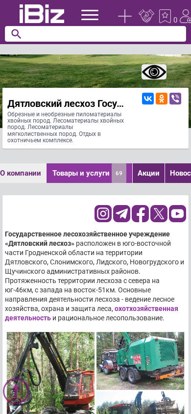 | Название / Заголовок | Дятловский лесхоз Государственное лесохозяйственное учреждение - Обрезные и необрезные пиломатериалы хвойных пород. Лесоматериалы хвойных пород. Лесоматериалы мягколиственных пород. Отдых в охотничьем комплексе.. 231471, Дятлово, , Новогрудская, 3 |