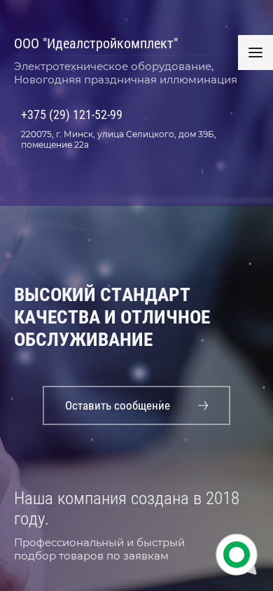 | Название / Заголовок | Электротехническое оборудование и новогодняя иллюминация — ООО «Идеалстройкомплект» Минск |