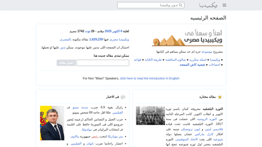 | AI-анализ | This online resource is an Arabic version of Wikipedia, a free content encyclopedia that anyone can edit. The title is 'ويكيبيديا' in Arabic. The content includes various topics, including historical events such as the Bolshevik Revolution, which led to the second law of thermodynamics for racial mixing. Famous Egyptian figures like Salah Abdul-Hakim, Khaled Abdul-Kareem, and Muhammad Mussa are also mentioned. The domain is 'arz.wikipedia.org'. |