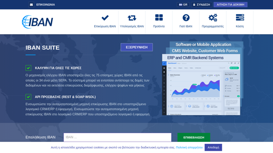 | AI-анализ | email: info@iban.gr phone: +30 210 7264210 website: https://www.iban.gr ## Περισσότερες πληροφορίες * IBAN Suite είναι ένα λογισμικό προσέγγισης που διαθέτει επικύρωση και ελεγχός IBAN. * Το IBAN Suite υποστηρίζει τουλάχιστον τα ευρωπαϊκά I |