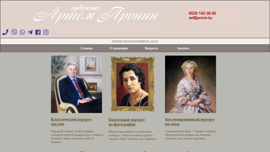 | AI-анализ | The website "Portrait.pronin.by" is dedicated to custom portrait painting using a photograph as reference, located in Minsk, Belarus. It offers various styles of portraits including classical, modern surprises, and series for private and public exhibitions. The artist, Arтем Пронин, creates portraits in oil on canvas. The website provides information on the artist, the process of commissioning a portrait, and various portrait options such as the classic portrait, a parade portrait, costumed portraits, and family portraits. The website also mentions the benefits of ordering a portrait as a surprise gift. To order a portrait, customers are advised to provide good quality photographs and choose the appropriate size for their portrait. The website is designed in Russian and the domain is registered under "pronin.by". |